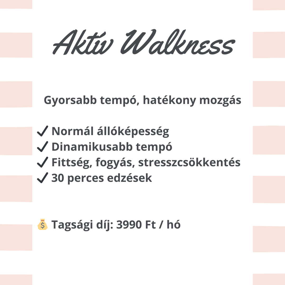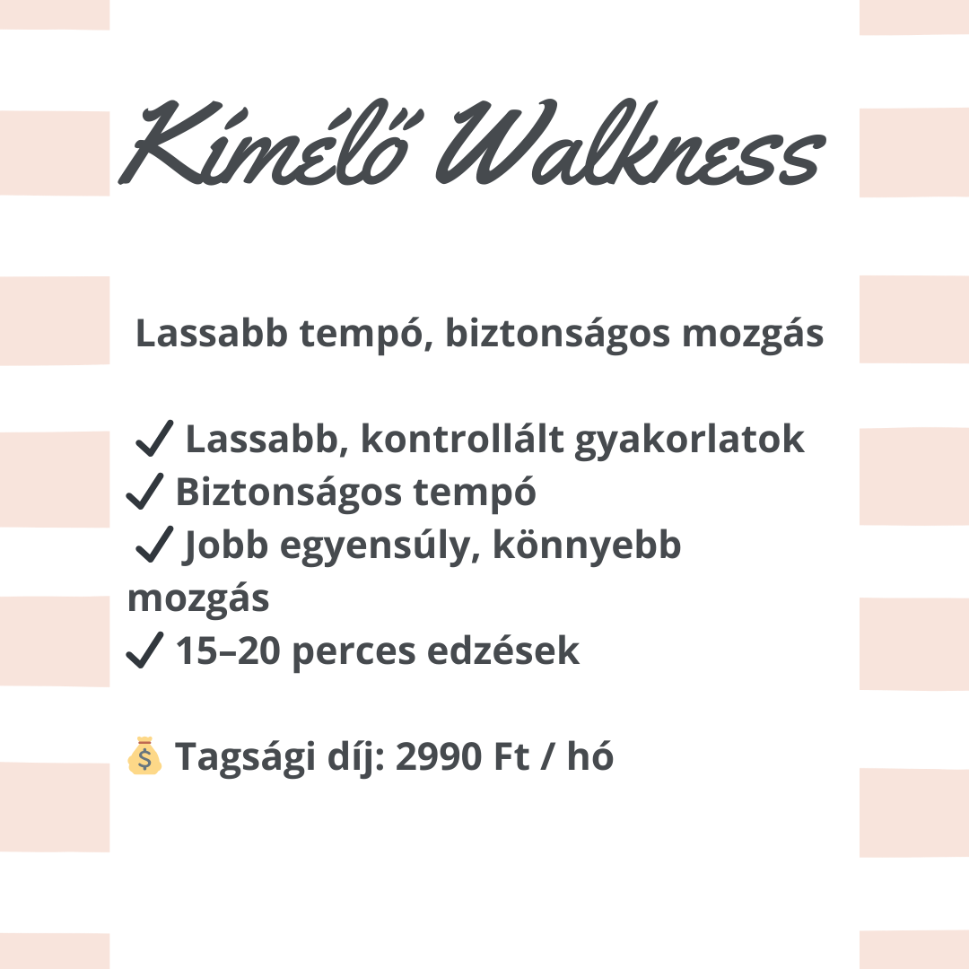 Így született meg a Walkness (a walk és a wellness szavakból). A célom, hogy a mozgás ne csak a testedet formálja, hanem a lelkedet is feltöltse. Mindezt az otthonod kényelmében, eszközök és speciális öltözék nélkül teheted meg – egyszerűen csak követed a ritmust és élvezed a változást.
